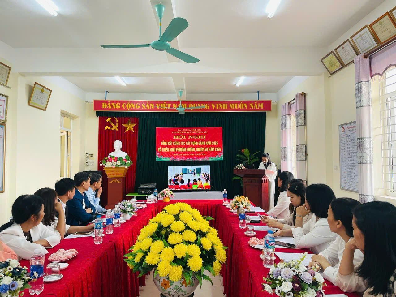 Chi bộ trường mầm non An Đổ xã Bình Sơn tổ chức Hội nghị tổng kết công tác xây dựng Đảng năm 2025 và đề ra phương hướng, nhiệm vụ trọng tâm cho năm 2026